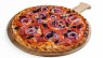 blat, sos roșii, mozzarella, șuncă, ciuperci, bacon, cârnați, ceapă, ardei gras, oregano.